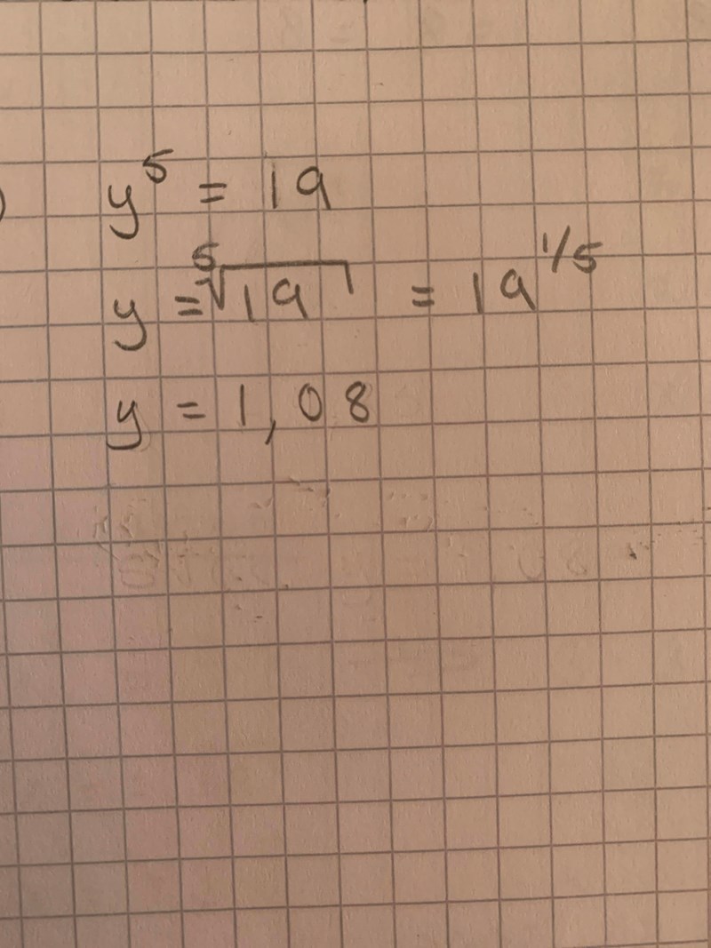 Beräkna y^5=19 utan miniräknare?