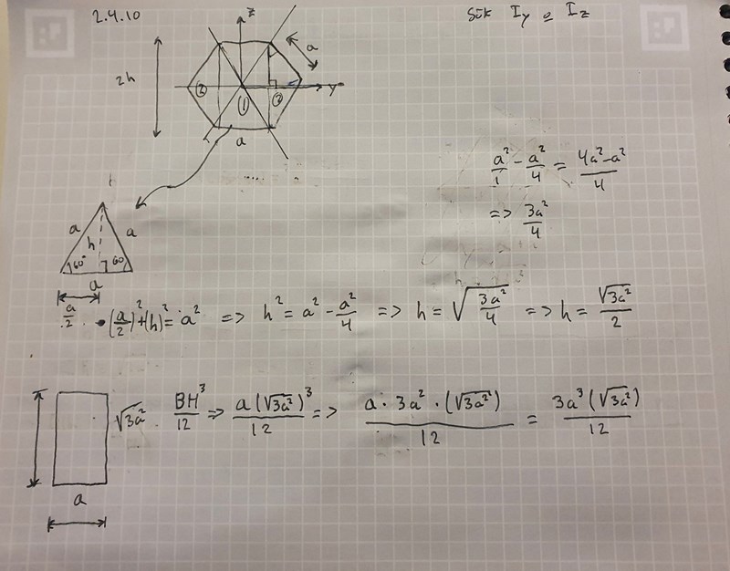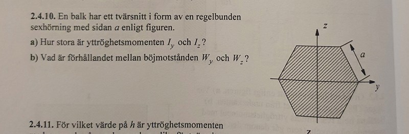 Jag tänker mig att man delar upp 6-hörningen i 6 tårtbitar där jag sedan kan räkna ut yttröhetsmomentet för den stora rektangeln i mitten för att sedan addera resterande 4 trianglar, är detta rätt metod ?