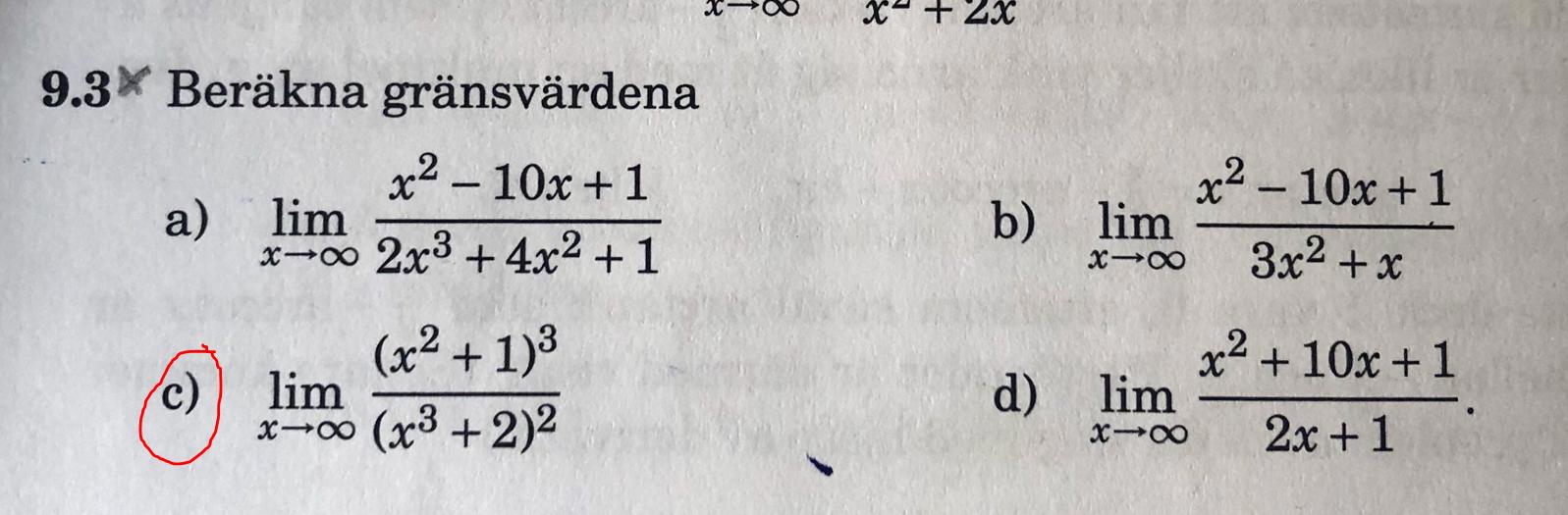 Beräknar gränsvärdena x-> oändligheten