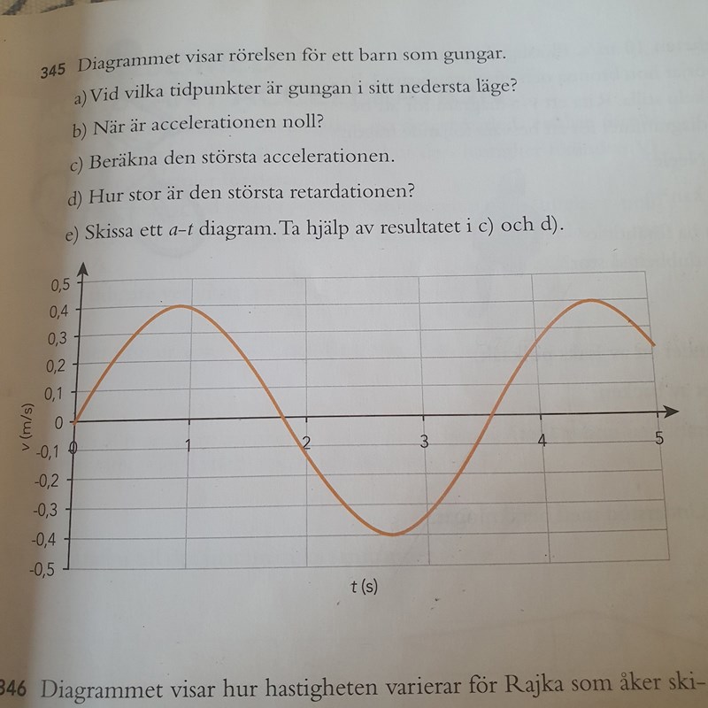 accelerationen är lutningen på grafen i en specifik punkt. Du ska hitta den tangenten som ger störst lutning