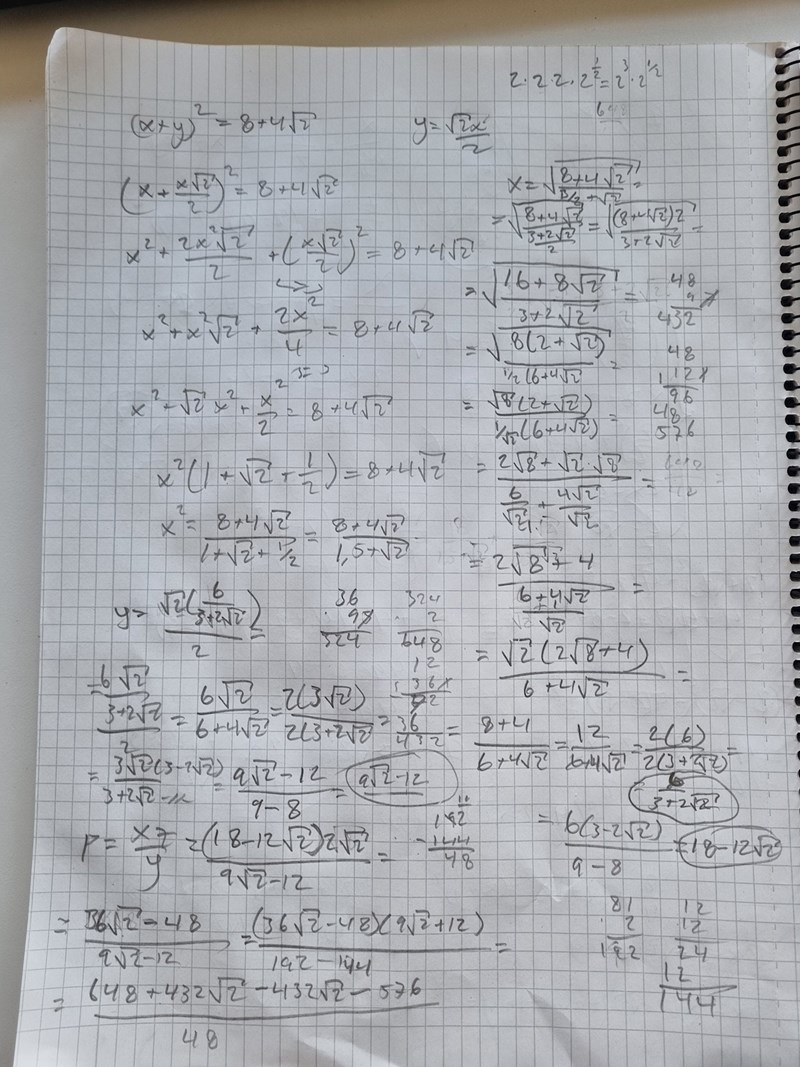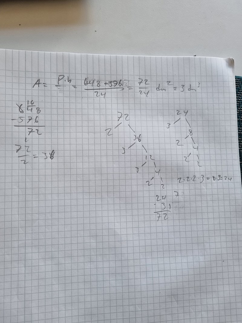 Jag valde att utgå från likformighet i min uträkning (kanske inte funkar?). Därefter följer en ytterst lång uträkning på ett ekvationssystem. Allt leder till att jag passande nog kommer fram till att arean är lika med 3 dm^2. Något som visar sig vara fel... Jag förstår inte vart det gått snett. Uträkningen är lite klyddig men förhoppningsvis går den att tyda någorlunda... Kanske är det ett fel antagande någonstans?