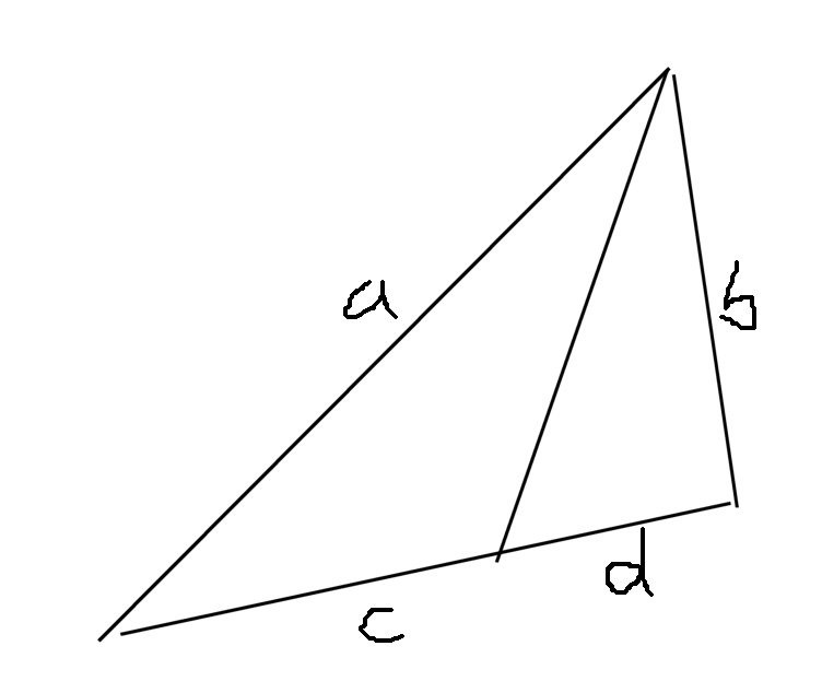Vad gäller bisektrissatsen kan du rita trianglar med bisektriser, gärna med stora skillnader i sidlängder, så ser du vilket förhållande som måste gälla. Här a/b = c/d.