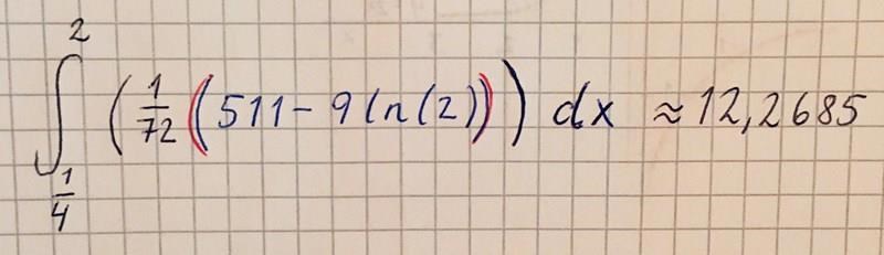 Jag tror att jag nu har beräknat värdet för dubbelintegralen och att det exakta värdet är och att om man vill skriva i decimalform så har vi det approximativa värdet 7,01.
