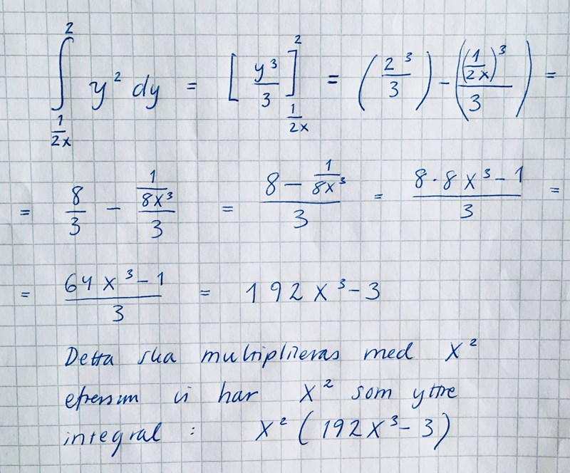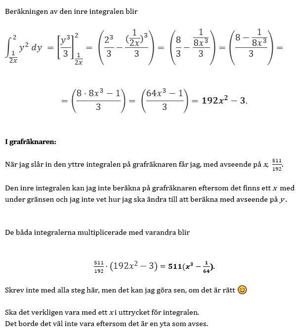 "Den inre integralen ger ett uttryck som beror av x () enligt senaste svaret från Trinity2.