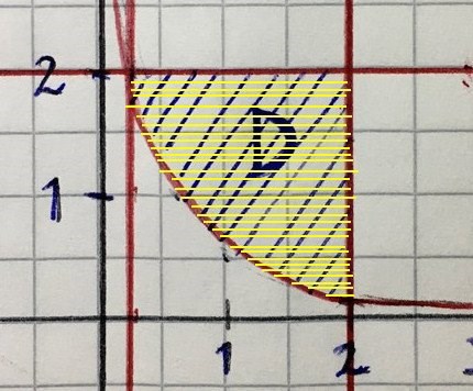 Jag vill gärna rita området, men måste nog läsa på lite mer i kursboken om flervariebelsanlys innan jag ritar.