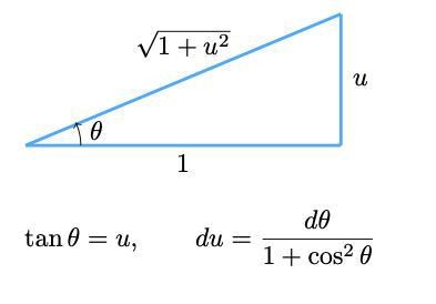Notera hjälptriangeln: , med lite trigonometri i rätvinkliga trianglar.