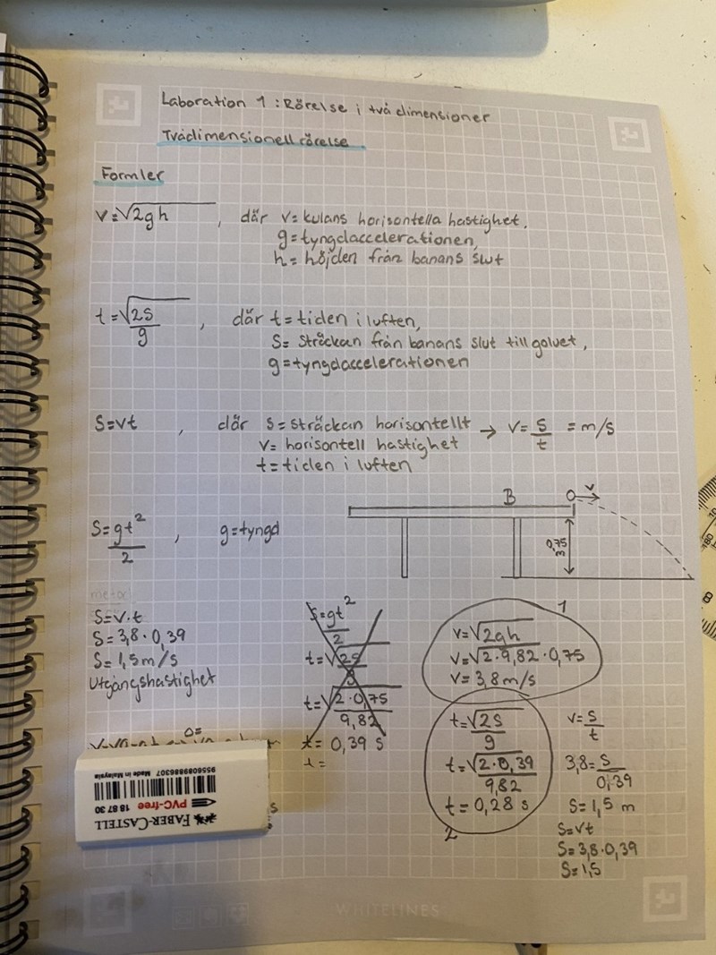 Hej, jag skriver en labbrapport (teoretisk med påhittade siffror med avseende om bordets höjd). Laborationen: Rörelse i två dimensioner. En kula ligger på kanten av ett bord och faller rakt ned för bordet. Jag ska beräkna kulans utgångshastighet.