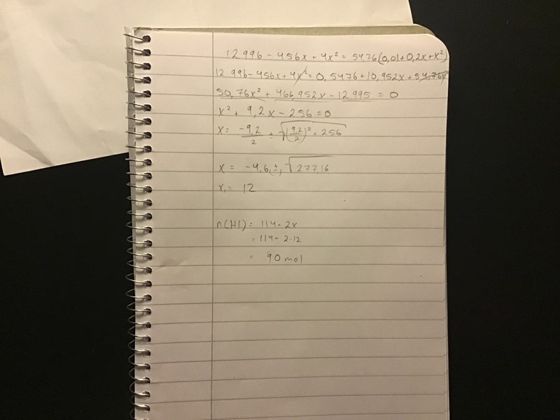 Det ser ut som om du har räknat med 114 mol HI i stället för 1,14 mol - och i så fall kan ditt varde vara korrekt.
