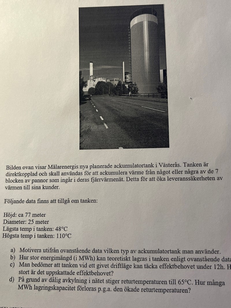 Frågan som lyder är "hur stor energimängd (I MWh) kan teorestisk lagras in tanken?