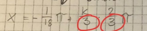 Jo, men nu var det den andra termen, dvs k·2πk\cdot2\pi, som du dividerat med 3 två gånger, se bild.