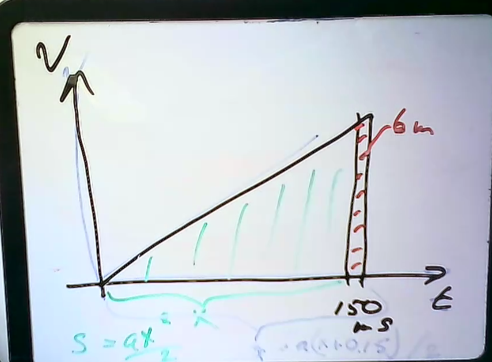 - innan dessa 150 ms börjar har farkosten avverkad sträcka s under tid t