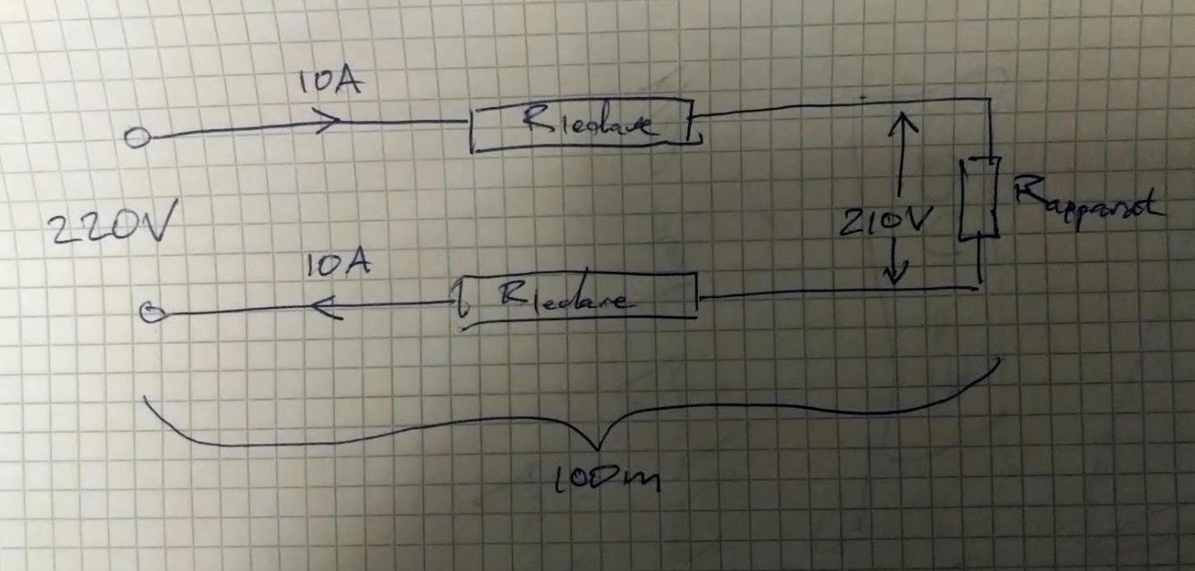 JohanF skrev:Hjälper nedanstånde figur dig nåt? Hur stor kan tillåtas var för att fortfarande kunna mäta minst 210V vid förbrukningsstället (apparaten)?