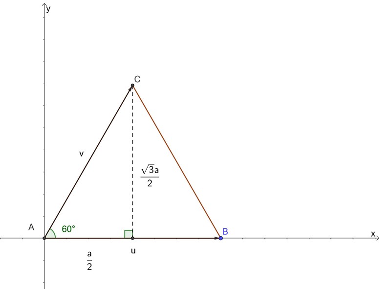 beräkning av vinkel mellan två vektorer som utgår från en liksidig triangel.