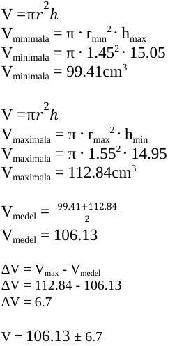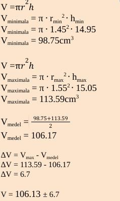 vill räkna ut volymen med avvikelse och formen är en cylinder. Gör jag rätt?