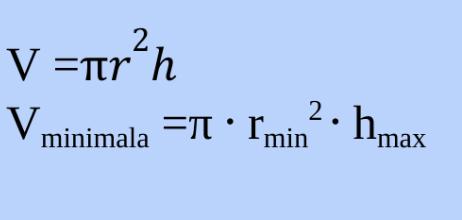 Gör jag rätt? Ska man ta minimala radien och maximala höjden eller ska både vara min för vi förösker hitta den minsta volymen?