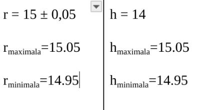 Om du vill hitta den maximala möjliga avvikelsen, behöver du beräkna den största respektive minsta möjliga volymen, vilket du får genom att räkna med de maximala måtten på höjd och radie, respektive de minimala måtten för höjd och radie. :)