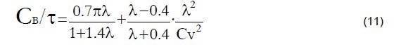 First the equation (12) should be solved to find the mean wetted length over beam λ, and then using equation (11) the trim of the flat plate τ, could be calculated. In solving equation (12) as a first estimator for λ, the value of (4/3)·LCG can be used. The lift coefficient CB is calculated from equation (3)."