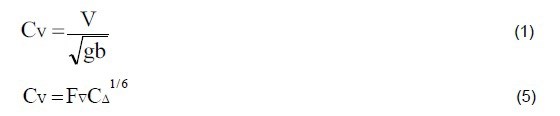Ekvation 1 ger Cv utifrån hastighet(V), gravitationsacceleration(g) och planade ytans bredd(b).