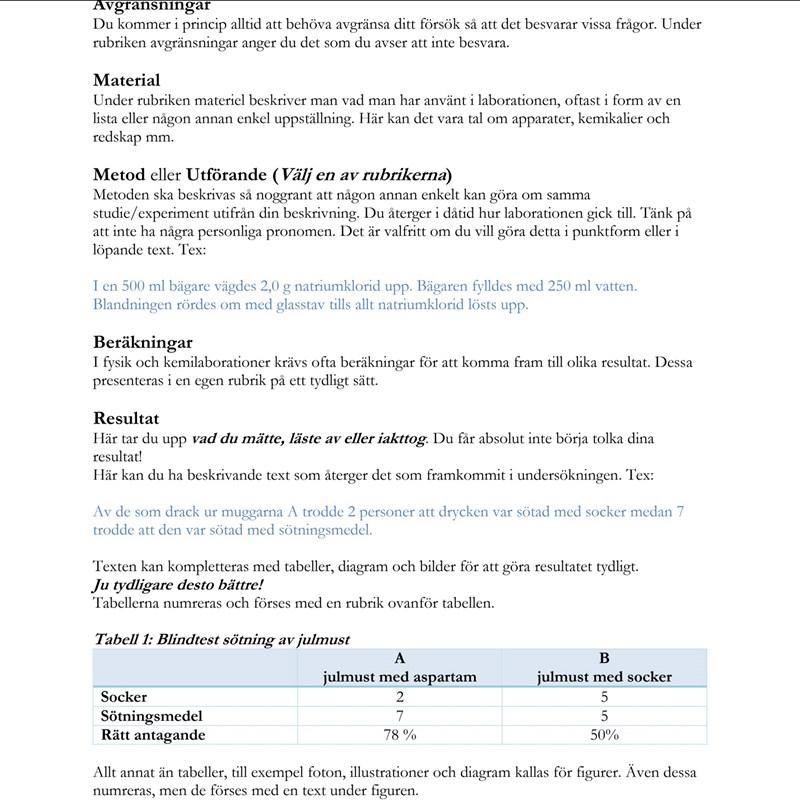 Mallen till min laborationsrapport verkar lite konstig. Ska man verkligen presentera beräkningar före resultaten i en laborationsrapport? Det känns ju märkligt, det är som att prata om felkällor innan man ens redovisat experimentets gång. Eller hur tänker ni?