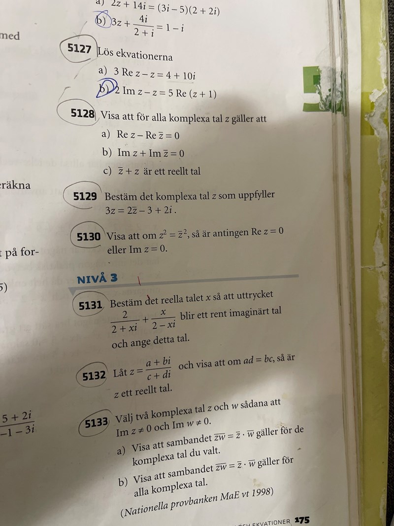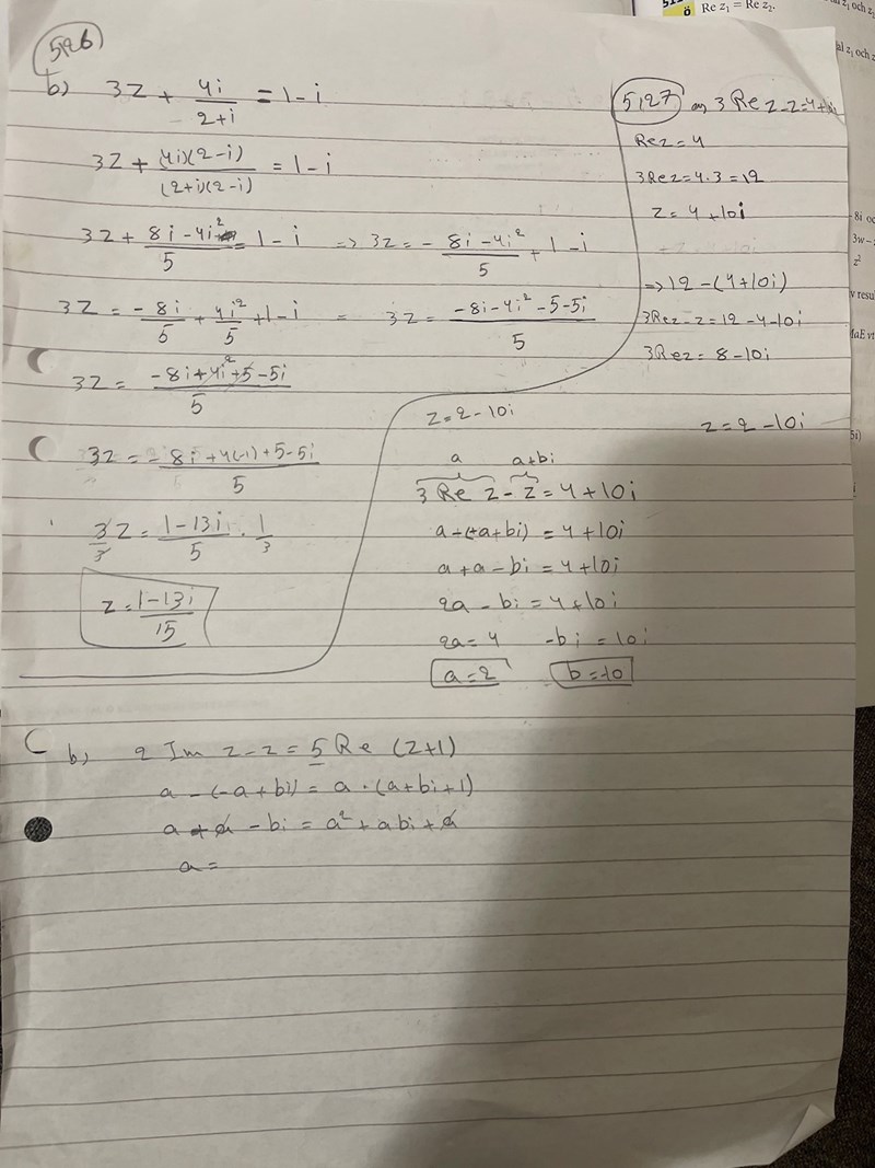 Och i frågan 5127 a. finns det 3 Re z-z= 4-10i, vad händer med 3? Jag menar om lägger a istället 3Rez så ska jag skriva 3a? Eller bara a?