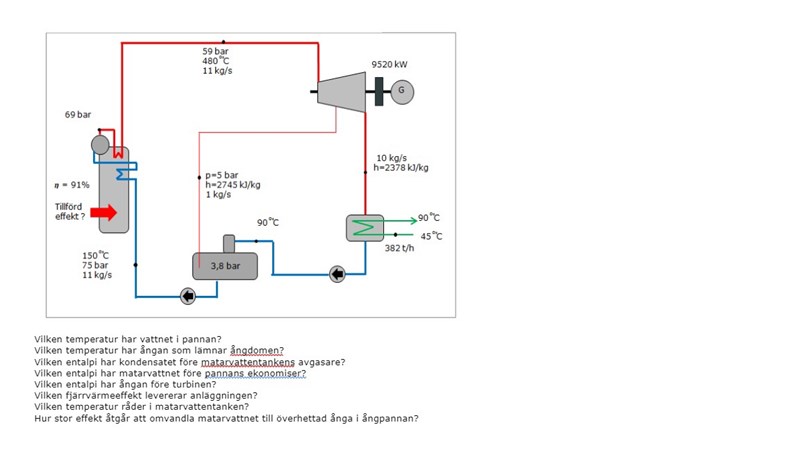 > 150,32 grader men det kan inte vara rätt då det är högre temperatur efter matarvattentanken så därför tänker jag att det måste vara 90 grader som kommer in och är inuti matarvattentanken då det ska successivt ökas efter det lämnar.