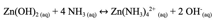 Det är den övergripande reaktionen som zinkjonerna deltar i, zinkhydroxiden som initialt bildas ingår inte i din formel. Den övergår dock i komplexjonen till höger vid överskott av ammoniak.
