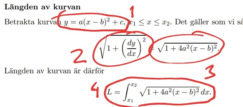 Här kommer en länk till hur man beräknar kurvlängd. LÄNK