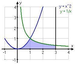 2. Titta på hur du skrivit in funktionerna när du vill integrera. Du måste integrera funktionerna separat och sedan addera värdena. Annars får du denna graf, som inte kan integreras då grafen skär y-axeln vid oändligheten.