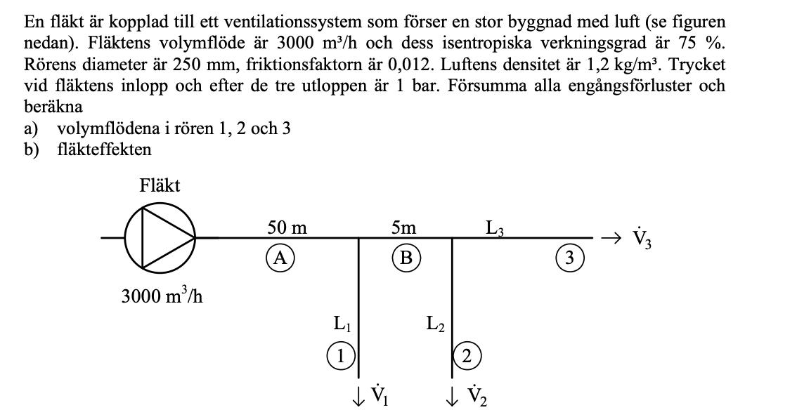 Jag har lyckats lösa den. Du måste lösa den från höger till vänster i bilden. Tänk liksom att rör 2 och 3 = B och sedan B och 1=A. Genom detta kommer du få 4 ekvationssystem du kan lösa.
