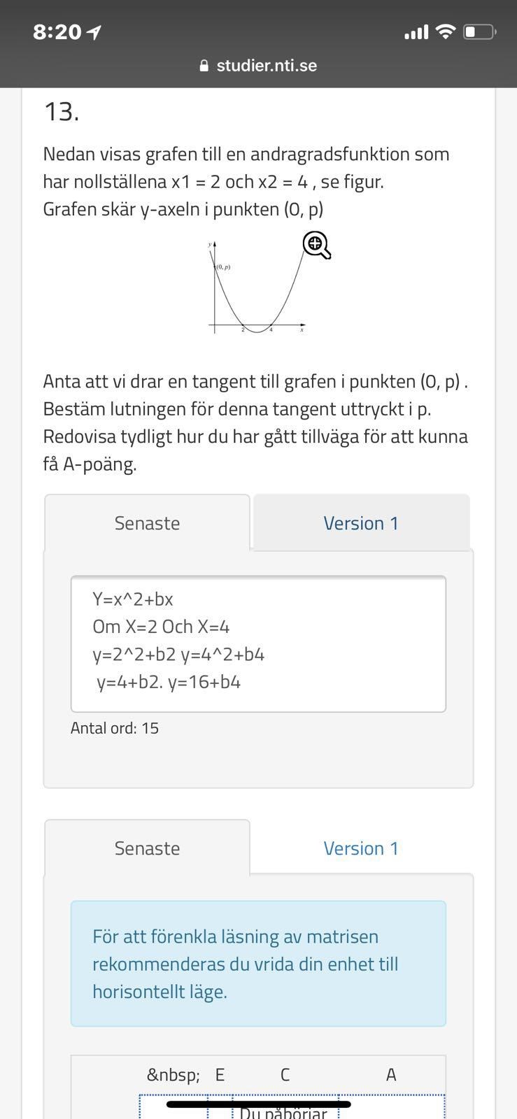Eller så använder du attf(x)=ax2+bx+cf'(x)=2ax+bf'(0)=b, så du behöver endast ta redo på vad b är.