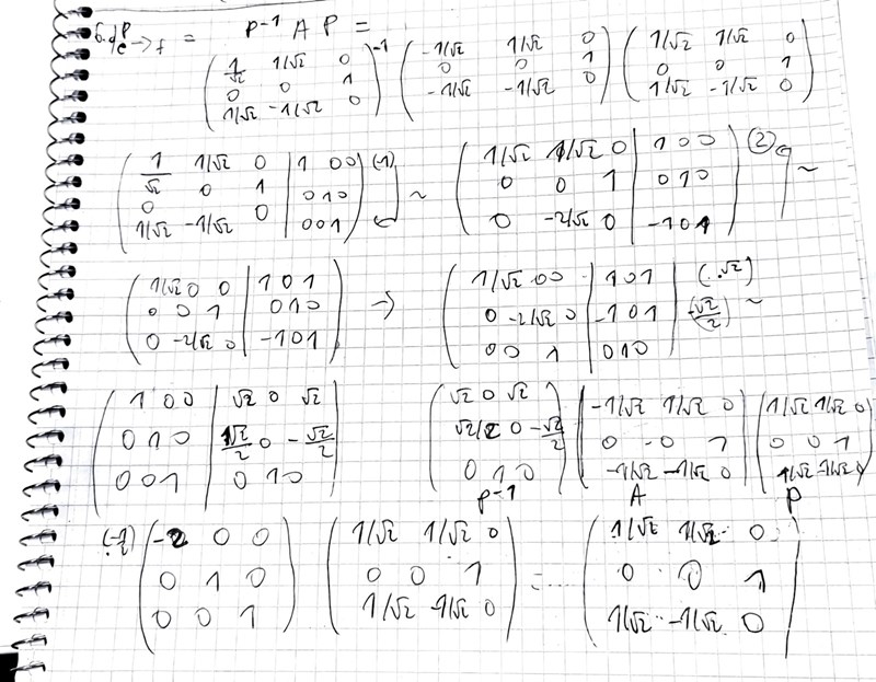 Notera att kolonnerna i matrisen är ortonormala. Matrisen är således en ortogonal matris, så inversen är lika med transponatet av matrisen.