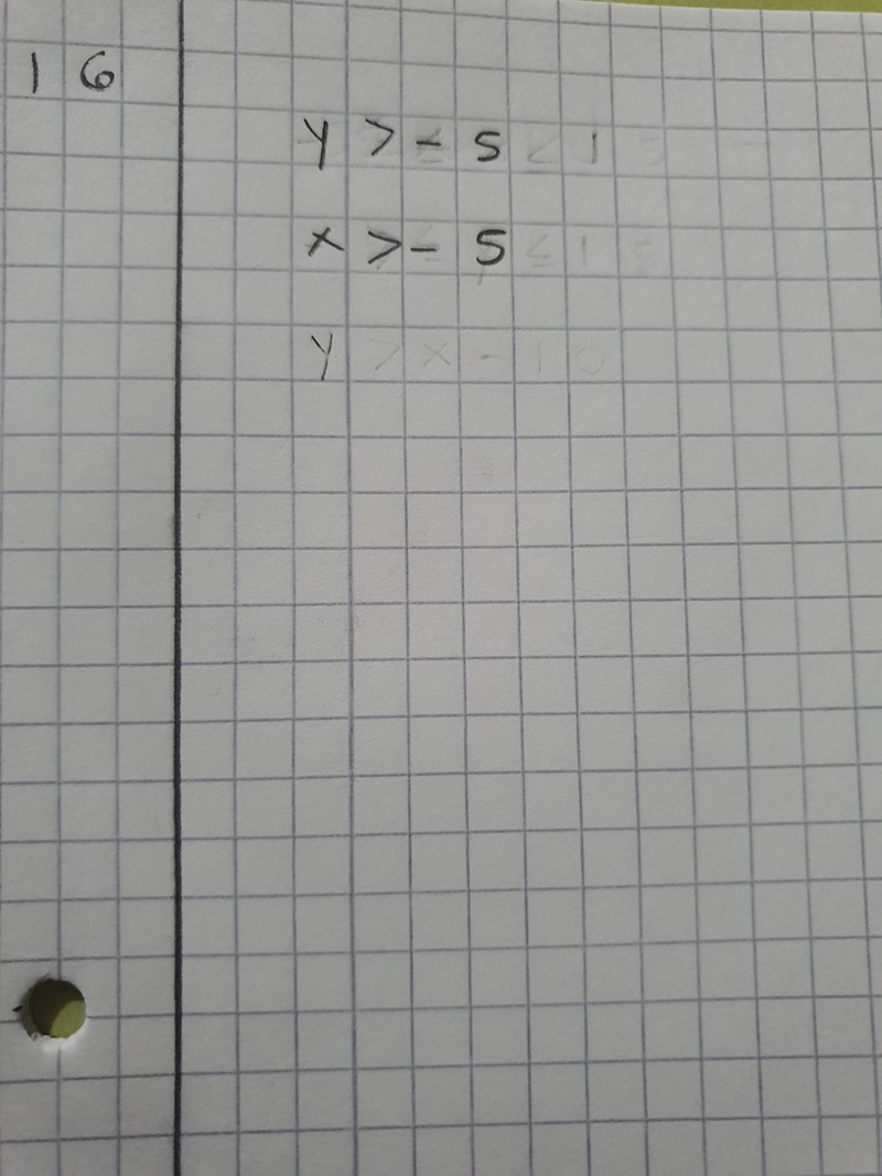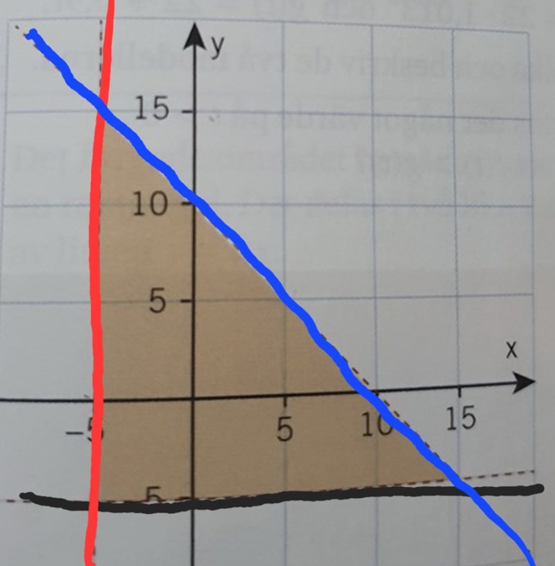 Yngve skrev:Du har börjat bra med att säga att området ligger ovanför linjen y = -5 och till höger om linjen x = -5.