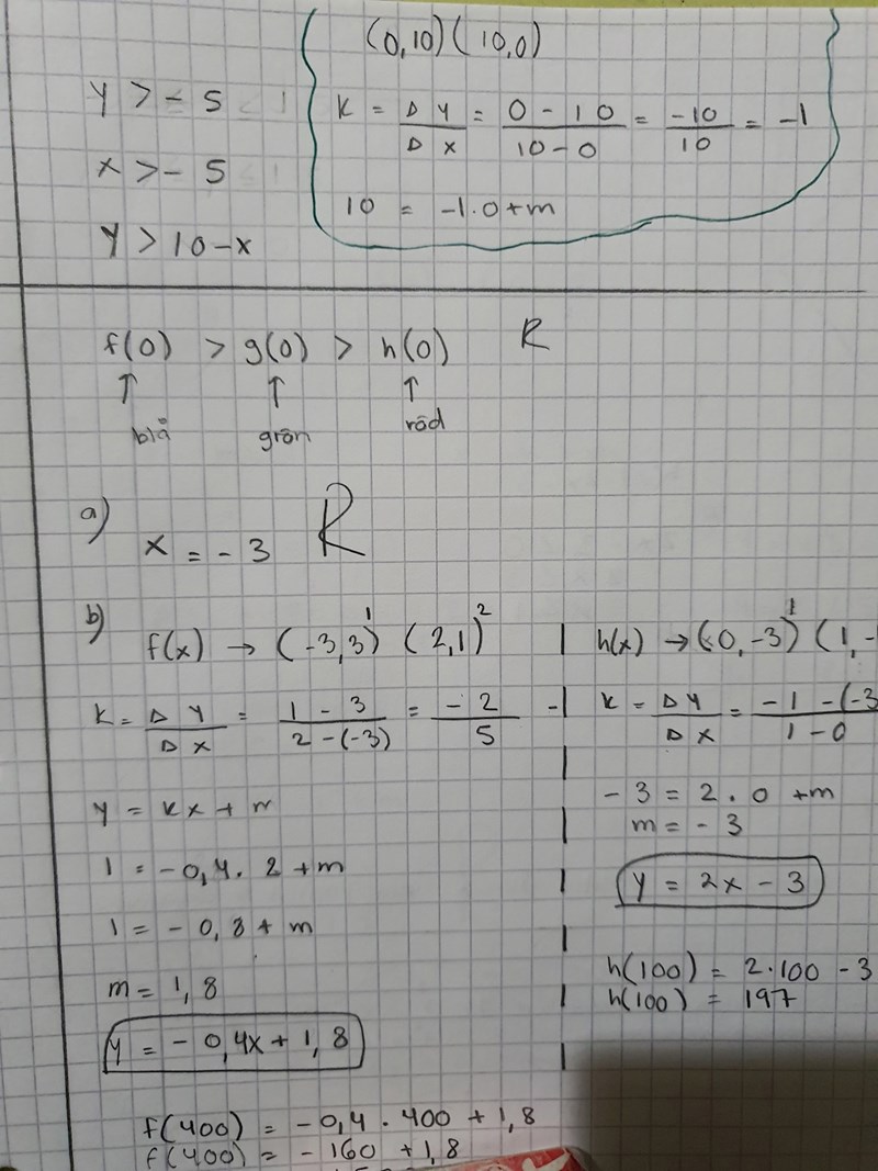 Yngve skrev:Du har rätt i att den blåa linjen är y = 10-x.