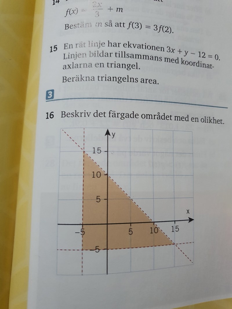 Men hur är det med y-värdena i området, ligger de ovanför eller under linjen?