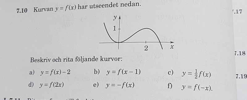 Jag har inga problem med a), c) och e) , men när värdet inom parantesen ändras hänger jag inte med på hur jag ska förklara och rita när jag inte vet vilken funktion det är ?
