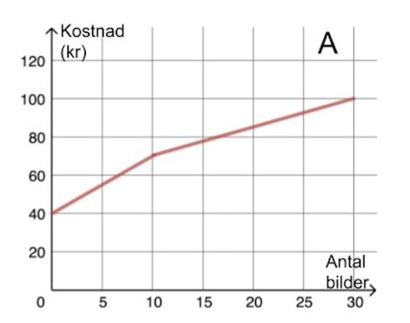 Okej så jag skulle kunna ta (100 kr - 70 kr)÷20 och då få svaret att varje bild kostar 1.5 kr?