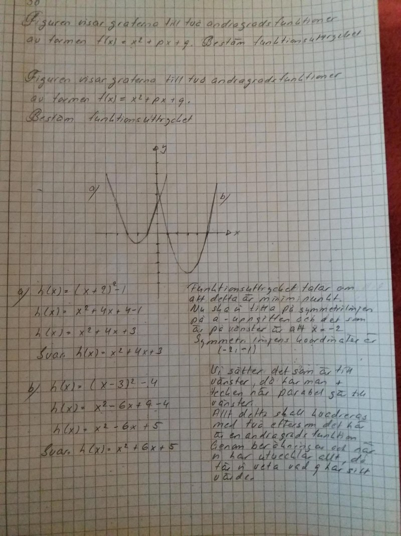b-uppgiften: Här har du tänkt rätt men du har i svaret plötsligt bytt tecken på x-termen från -6x till +6x.