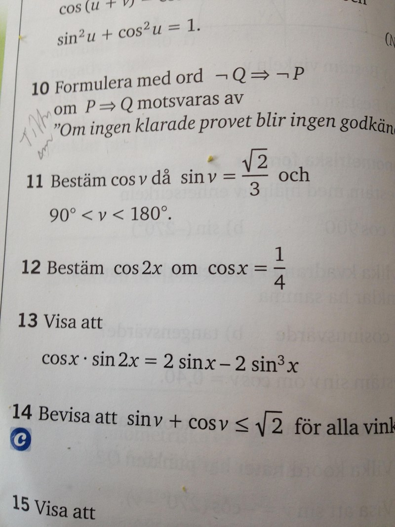 Här har du stor nytta av formeln du har försökt härleda de senaste dagarna - . Du har ju värdet på cos x, så det är bara att sätta in det i formeln.