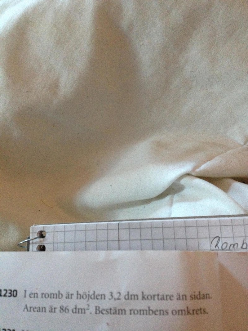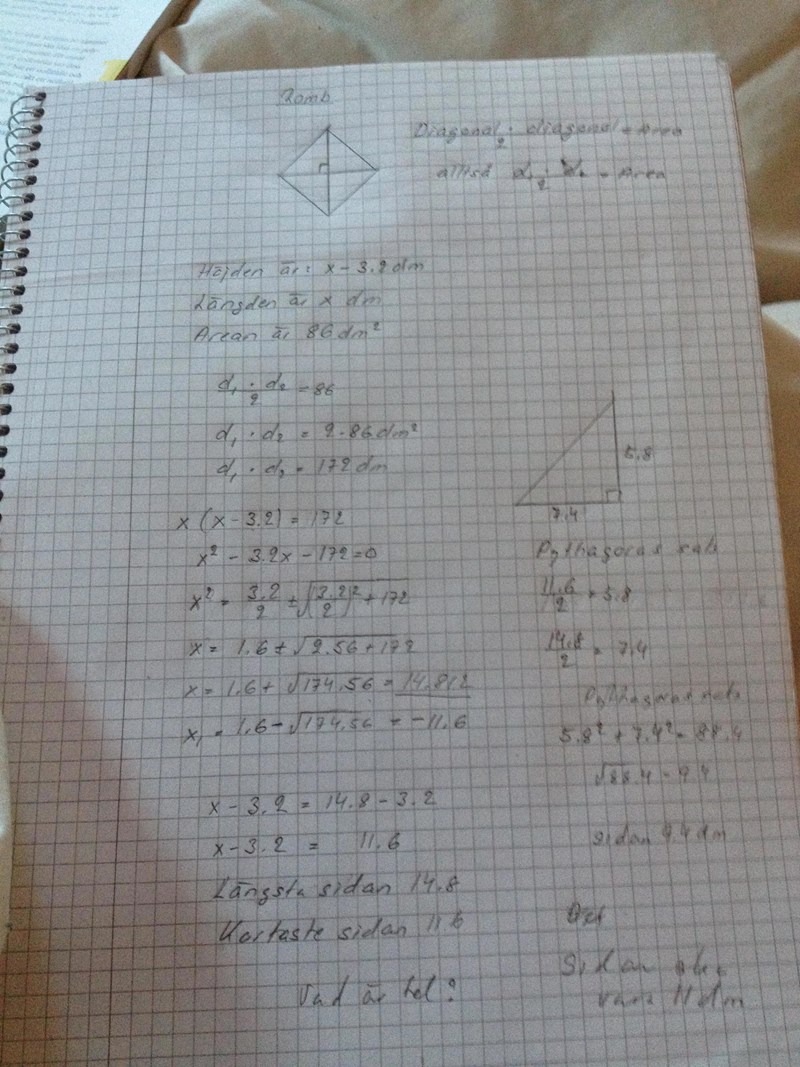 Som jag tolkar din avfotograferade uträkning högst upp i tråden så ser du rombens