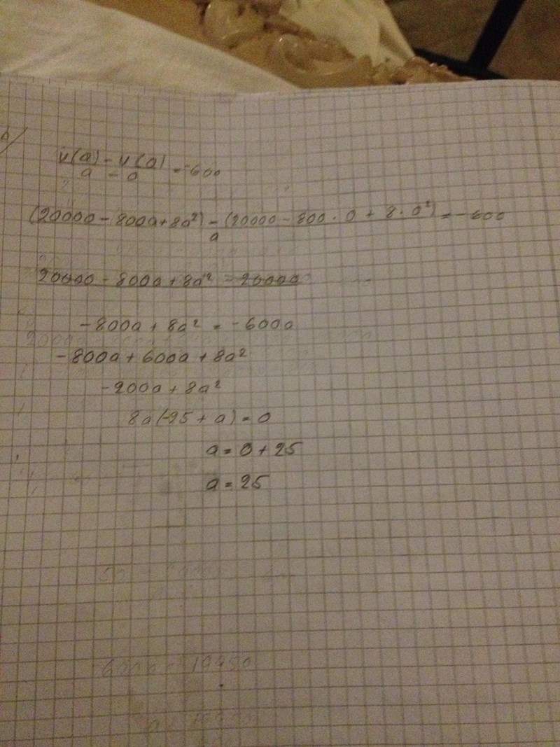 Nej det stämmer inte att V(a) = 20000 - 800a + 64a, det går inte förenkla V(a) nå mer än att