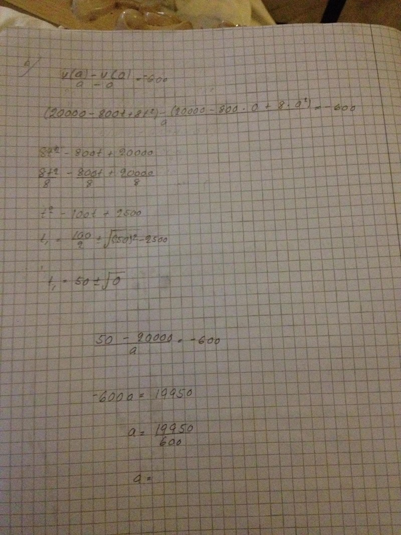 Det har alltså runnit ut (800a + 8a^2) liter på a minuter. Då vet vi att (800a + 8a^2) / a = 600.