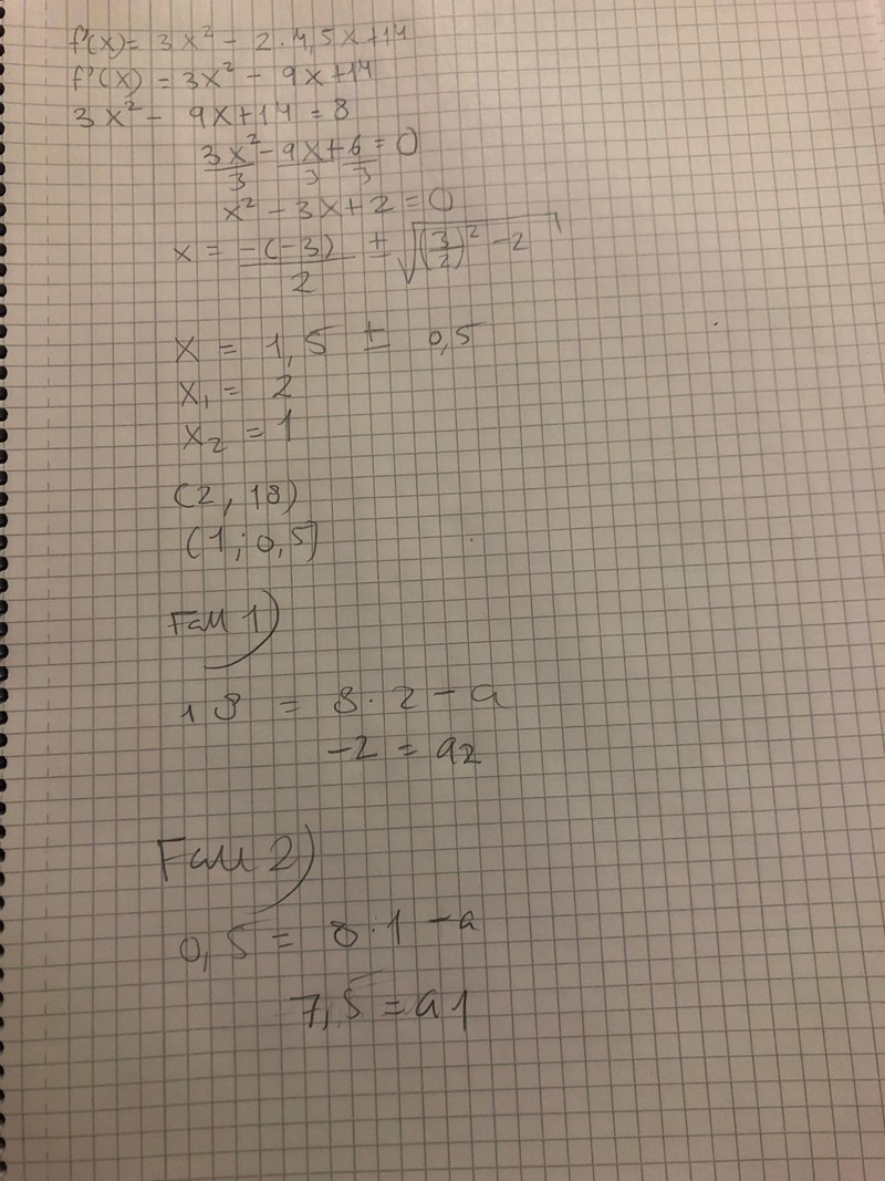f’(x)=3x^2-4,5*2x+14= 3x^2 -9x+14