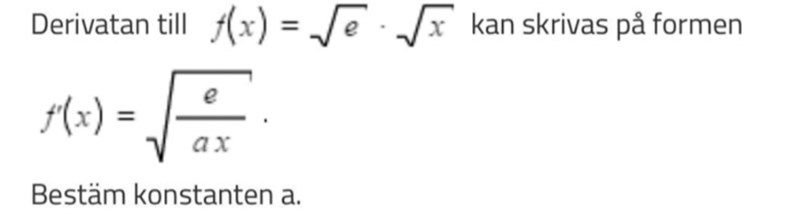 Jag får inte derivatan till att bli som på uppgiften. Hur ska jag göra?