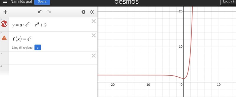 Där dessa funktioner skär varandra finns lösningen till ekvationen, dvs. a blir samma för båda funktionerna.