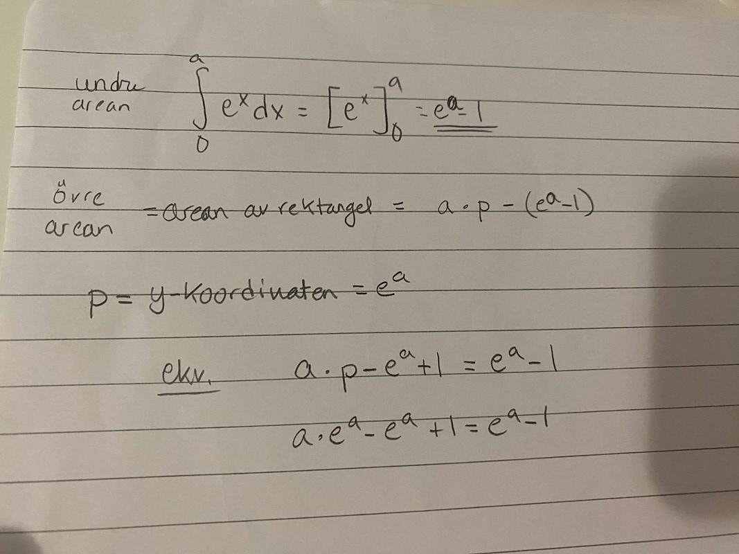 Om du syftar på leden i den ekvation som står längst ner på pappret representerar VL. det grå områdets area som en funktion av a och HL. det streckade områdets area som en funktion av a.