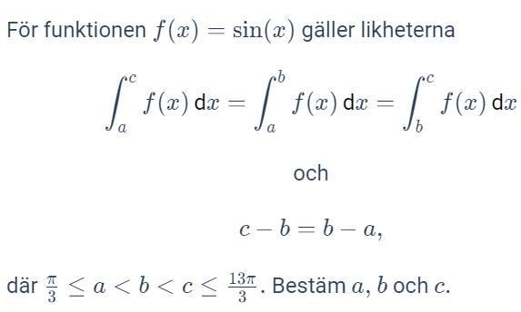 Hade behövt möjligtvis några tips inför denna uppgift. Min första tanke var att bestämma vad integralerna har för "värde" och blev för