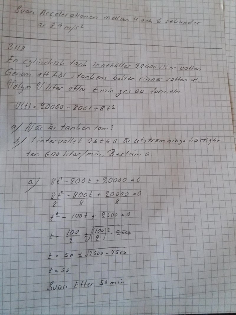 Volymen är 20000 L. Volymen var 20000l och efter 50 minuter blev tanken tom.