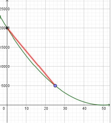 Jag tror att efter 50 minuter så är tanken tom. V = volymen (t = tiden)