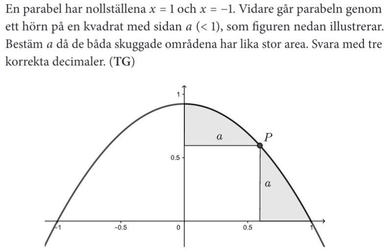 såg precis att uttrycket jag skrev för arean av kvadraten stämmer inte heller istället för (a²-1) borde det blir a² bara?