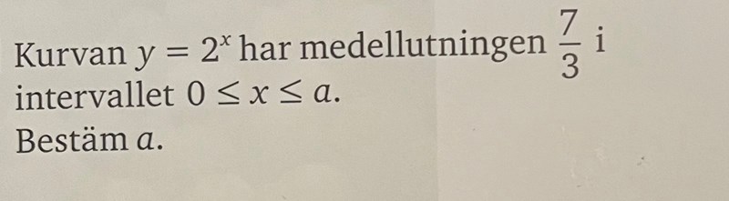 Du vet att medellutningen är 7/3, eller hur? Det betyder att ett linje med lutningen 7/3 som går igenom kurvan har två punkter på kurvan, x=0 och x=a.